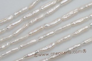 | White 4*14mm Long-drilled Freshwater Biwa/Stick Pearl Strand | | Item No.: | Biwa046 | Beads Size: | 4*11mm | | Beads Type: | Freshwater Biwa Pearl | Pearl Quality: | Good | | Pearl Color: | White | Length: | 15inch |