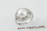 06.spr003 sterling silver 8.5-9mm pearl &zircon beads rings, us size 7