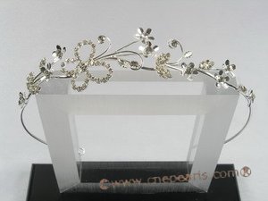 This tiara is pure elegance and sparkle! Beautiful rhinestone floral pattern adorn this spectacular headpiece. The design measures 15 inches on a silver-toned band and is 1 inches tall in the center. This tiara is coordinates with most bridal dress, especially white and off-white. Shopping other style bridal jewelry: bridal jewelry set or bridal comb jewelry or bridal pearl tiara