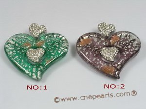 60*65mm heart-shepe lampwork glass pendant set in a 18KGP moungting with zircon as decoration wholesale; different color for you choose; This list prices is for one piece lampwork glass pendant include a 16inch 18KGP leather cord chain; Also buy other lampwork glass jewelry: Coloured glazed necklace set or lampwork pendant or crystal pendant