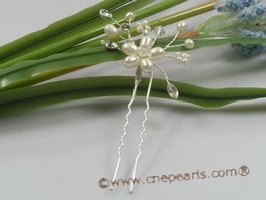 A dramatic and stunning hair pin! Each hair pin is delicately hand wired with 5-6mm white rice pearl and Cubic Zirconia crystals.This silver-toned Hair Pin measures 3.5 inch in length and are easy to place in any direction throughout your hairstyle. The Rhinestone Hair Pins match well with any wedding gown or destination wedding dress Shopping other style bridal jewelry: bridal jewelry set or bridal comb jewelry or bridal pearl tiara