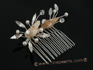A stunning bridal comb with amazing detail! This comb is made of delicate nature white shell beads with sparkling rhinestone centers. The comb is accented with white freshwater tiny pearl centers. This beautiful bridal comb can be worn with a variety of hairstyles and as a back or side comb. The floral detailing measures 3 inches along a comfortable metal comb and approximately 1.5 inches at its widest point. This bridal comb coordinates best with white colored wedding dresses.