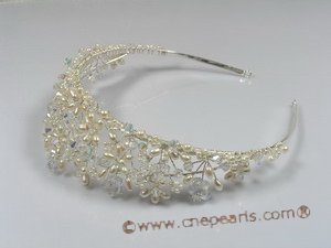 Hand-knitted pearl bridal tiara is so delicate and feminine, with a silver-plated setting covered with tiny petite rhinestones,4-5mm white rice pearls and 3-4mm white potato pearl. The wonderful pearl tiara measures 15" in diameter and 2inch at the center. Shopping other style bridal jewelry: bridal jewelry set or bridal comb jewelry or bridal pearl tiara