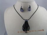 10.gset016 wholesale bule heart-shape lampwork black cord nekclace set