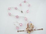 gset023 oval lampwork beads&pearl necklace jewelry set