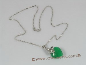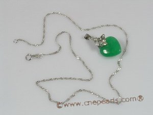 Greed jade pendant made of heart-shape green jade beads with silver plated mountting; with zircon beads as decoration; size:10*25mm This list price is for one piece silver plated jade pendant include a 16inch 18KGP chain; Buy other jasper jewlery: jasper necklace or jade earrings or jade pendant;