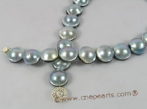 Cultured mabe pearl necklace made of 15-16mm AA grade nature Grey mabe pearl shell beads with pearl inside! flat pearls are made by growing on the side of the mollusk rather then inside. Perfect for this type of jewelery. 16inch in length and end with sterling silver push-in clasp; ALSO buy: mabe pearl pendant or mabe pearl earrings or Mabe pearl jewelry