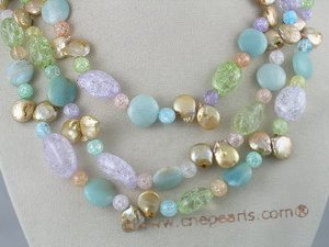 mpn046 Champange coin pearl necklace with crystal beads [multi strands neckalce]  30.40€