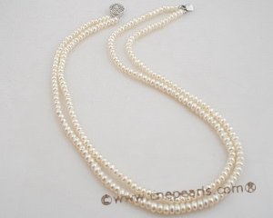 Wear this fun and flexible necklace for every occasion! This cultured pearl necklace is created from 4-5mm nature white freshwater button pearl, This necklace carefully hand strung in double strand, end with sterling silver push-in clasp and first strand length is 17inch! An unforgettable gift for you lover!