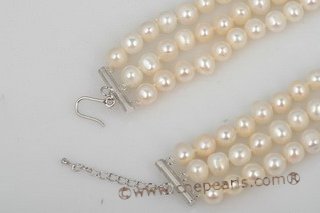 Hand Knotted Pearl Layer Necklace is strung by white thread with three rows 8-9mm white freshwater potato pearl, combine with an 60mm mother of pearl shell, end with a silver toned adjustable clasp and first strand length is 16inch! Wear this fun and flexible necklace for every occasion! | Triple Rows White Potato Pearl Layer Necklace with Shell Pendant | | Item No.: | Mpn280