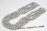 mpn310 Stylish multi-strand grey potato pearl necklace with Rhinestone Encrusted Medallion