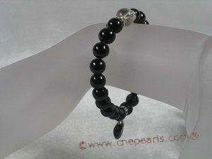 Hand made natural stone power HEALING elastic bracelet made of 8mm black agate gemstone beads, adornning with 10mm crystal beads, 7.5 inch in length; Agates provides inspiration, strength, protection and support. Also buy: Gemstone necklace or Freshwater pearl bracelets