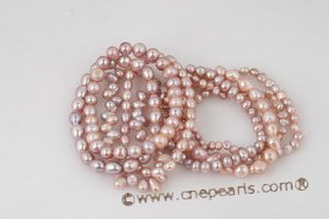 Designer stretchy pearl bracelet thread with elastic thread, consinst of 8 individual rows mix size and shape freshwater cultured pearl in purple, 7.5inch in length.