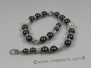 Delightful pet pearl collars makes an attractive accessory for a cat or dog.This pearl pet necklace features 10mm black south sea shell pearl combined with silver crystal fitting, threaded with metal wire and end with lobster clasp; available length in 8" and up;