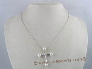 pn095 Cubic Zirconia Cross pearl Pendant Necklace [pearl necklace]  40.86€