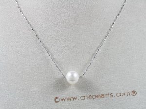03.pn183 8-9mm white round pearl with steling silver chain necklace