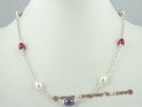 07.pn009 6-7mm white potato shape pearls &multi-color agate beads necklace
