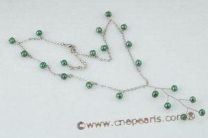 Festive and cheery,This 16inch Y style pearl necklace features a 5-6mm green potato pearls pendant in tree pattern, combine with plated silver rolo chain and lobster clasp with 2inch extender! will look smashing with any look you wear! Also available in sterling silver chain; Also buy: Single strand necklaces or Mother's jewelry or Jewelry packing box