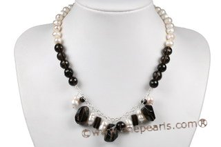 This necklace is really pretty. the 8-9mm white potato pearls and twin pearls are of good size and lustrous. The 10mm smoking quartz beads add a different look to plain pearls.the necklace completed with 925 silver lobster clasp and 925 silver fitting, 16 inch in length.