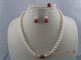 A graceful cultured pearl necklace set consisting of a necklace,a bracelets and a pairs of sterling silver earring,the necklace made of 7-8mm white button shape freshwater cultured pearls, and a piece of 10mm round chinese jade bead set in the centre as a decoration. The clasp is made of sterling silver and stamped 925 on it. The necklace is 16 inches in length and the bracelet is 7.5" long.