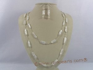 freshwater pearl rope necklace -- the long necklace is 36" in length with sterling lobster clasp,hand wrapped with good quality 7*18mm white biwa pearl,the pearls are lined randomly in the sterling chains,each pearl is adhere with 2 pieces sterling silver beads at both side.