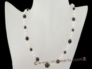 Fashion pearl jewelry set consist of a 16inch necklace, a 7.5inch bracelet and a pairs of sterling silver dangle earrings; this set featured 6-7mm white potato pearl alternated with 8mm/10mm round faceted smoking quartz, sterling silver beads as spacer! End with 8mm 925silver ball clasp. Minimum quantity: 5 pieces