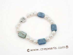 Elegant blue gemstone are splashed throughout the design of this beautiful jewelry set,6-7mm white freshwater potato pearl interspersed with 10*14mm square blue gemstone beads and silver spacer fittings; 16inch in length and end with silver plated box push-in clasp;A 7.5inch bracelet and the match sterling hook earrings completes this beautiful jewelry set! This list price is for the a 16inch necklace and a 7.5inch braclet;