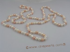 This is a brand new rope pearl necklace made of white and pink genuine potato pearls. The pearls measure 7-8mm of good quality, Each pearl has been professionally hand knotted on silk thread for security and beauty.48inch in length and No clasp used on this necklace; different color for you choose: pink or white!