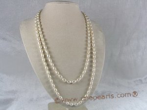 Cultured freshwater pearl opera necklace made of nature white rices shape pearls. The pearls measure 6-7mm, Each pearl has been professionally hand knotted on silk thread for security and beauty.48inch in length ,No clasp used on this necklace; different color for you choose: purple,pink or white!