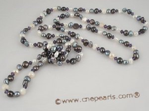 You'll exude class and elegance in this hand-knotted 48-inch white &black pearl rope necklace. design in 6-7mm white and black freshwater nugget pearl,with 4mm purple faceted crystal beads at intervals, perfectly matching in colors! No clasp used on this necklace;