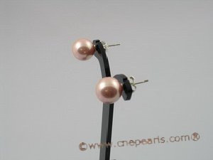 07.shpe004 10mm pink round shell pearl sterling earrings wholesale