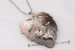 wholesale 60mm sea shell carved leafe-design  pendant with a 18KGP mounting and zircon beads!