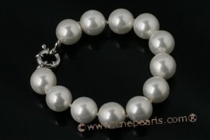 Charmming shell pearl bracelet made of 12mm white round shell pearl beads, Each pearl is double knotted with durable silk thread for beauty and security; Finished with plated silver or sterling silver spring ring clasp; Also buy: Shell pearl necklace jewelry or Shell pearl pendant and earrings