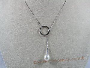 04.spp038 18inch sterling silver box chain Chain Lariat with 8-9mm ter-drop pearl drop necklace
