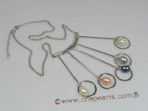 wholesale sterling pendant featured 7-8mm multicolor tear-drop pearl circle pendant dangling from sterling chain; The length is 16 inch;