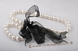 shell pearl necklace set inculde a 17inch necklace and matching an 7.5inch bracelet, featured of 14mm round white(#501) color shell pearl beads, double knotted with durable silk thread for beauty and security; fasten with a black ribbon, Also buy other pearl jewelry: BRIGHT-COLOR JEWELRY or Pearl beach jewelry or shell pearls jewelry