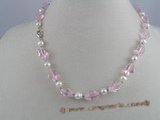 Charmming shell necklace set Made of a necklace and a pair 925silver of earrings, connected with pink nugget shell beads, alternate with 6-7mm white freshwater potato shape fresjwater pearl; The necklace is 16" in length, ended with 925 sterling or plated silver clasps. Good contrast in colors with best value!