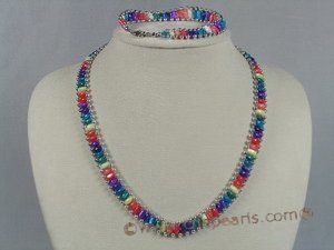 Tiny silver balls gracefully accent this belt shell choker necklace set, consist of a necklace and a 7.5inch bracelet, this set feature 4*7mm multi-color oval shell beads,The necklace is 18" in length, ended with plated silver lobster clasps. Good contrast in colors with best value!