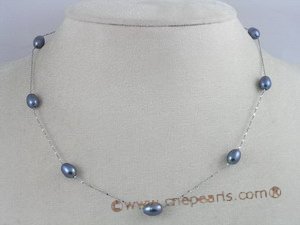 If you saw the movie Tin Cup, you likely remember the great pearl necklace Rene Russo wore throughout the film. We know we did! Crafted with 6-7mm black rice shape freshwater cultured pearls and a delicate 925 sterling silver dazzling chain, this is a high-quality piece made with genuine cultured pearls. Equally elegant whether you pair it with a turtleneck or a cocktail dress, this versatile necklace has become an instant classic, not to mention one of the favorite pieces in our bridal jewelry collection. 16 inches. Spring ring clasp. The matching bracelet, item number (pbr129) are also available.