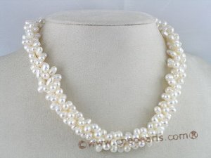 01.tpn003 Three strands 4-5mm white top-drilled freshwater pearl twisted necklace