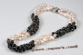 tpn018 three twisted strands 6-7mm white mixing dark bule top-drilled pearls necklace [twisted neckalce]  16.10€