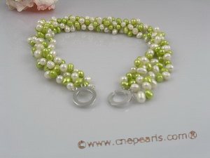 tpn021 three twisted strands 6-7mm white mixing light green top-drilled pearls necklace [twisted neckalce]  16.10€