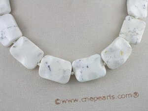 Elegant looking white turquoise necklace strung with 25*17mm white wave-design turquoise, ended with sterling or silver spring ring clasp and 17inch in length;Each beads is double knotted with durable silk thread for beauty and security; Alao buy other jewelry: Coral necklaces or Turquoise necklaces or Coral & Turquoise jewelry