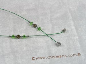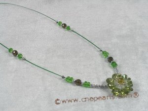 Fashion cubic zircon necklace, colloid lines thread with green zircon beads and faceted crystal beads, set a 28mm 3layers flower design zircon pendant in the middle, silver beads as spacer;16inch in length and end with silver magnetic clasp; Also buy other zircon jewelry: zircon necklace or zircon bracelet or zircon rings